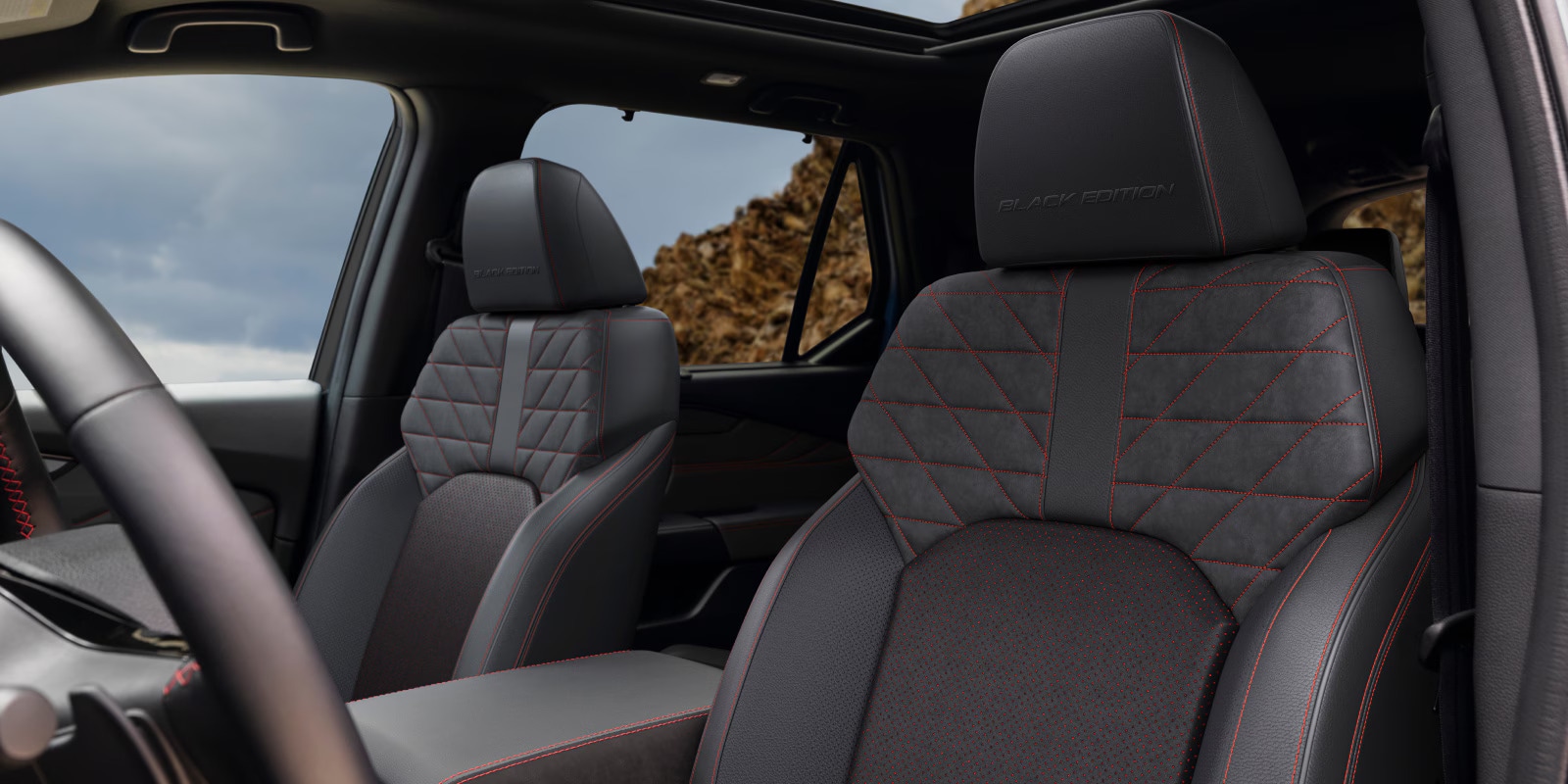 Finally, we have the Honda Pilot Black Edition. This top-tier trim represents the pinnacle of Pilot sophistication.Gorgeous Berlina Black 20-inch alloy wheels with black lug nuts make their debut this year. Glossy black mirrors complement the dark theme perfectly. Inside, you'll find premium leather-trimmed seats with quilted Alcantara accents and exclusive red ambient LED lighting.